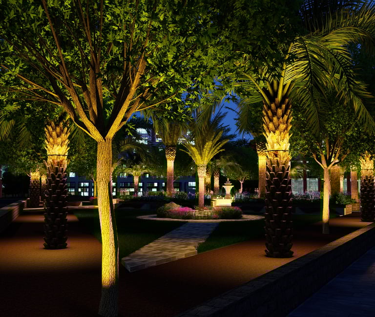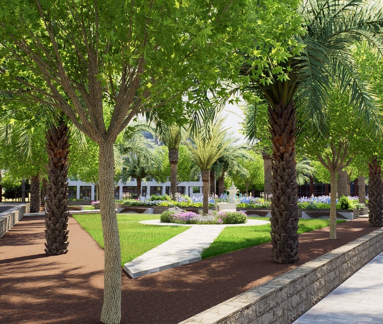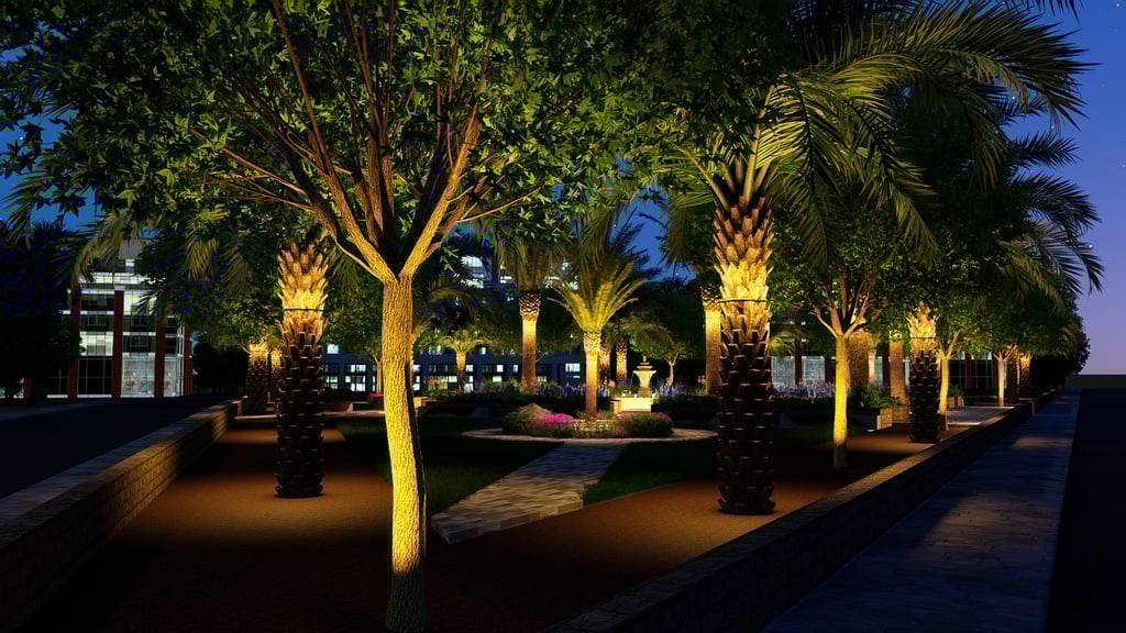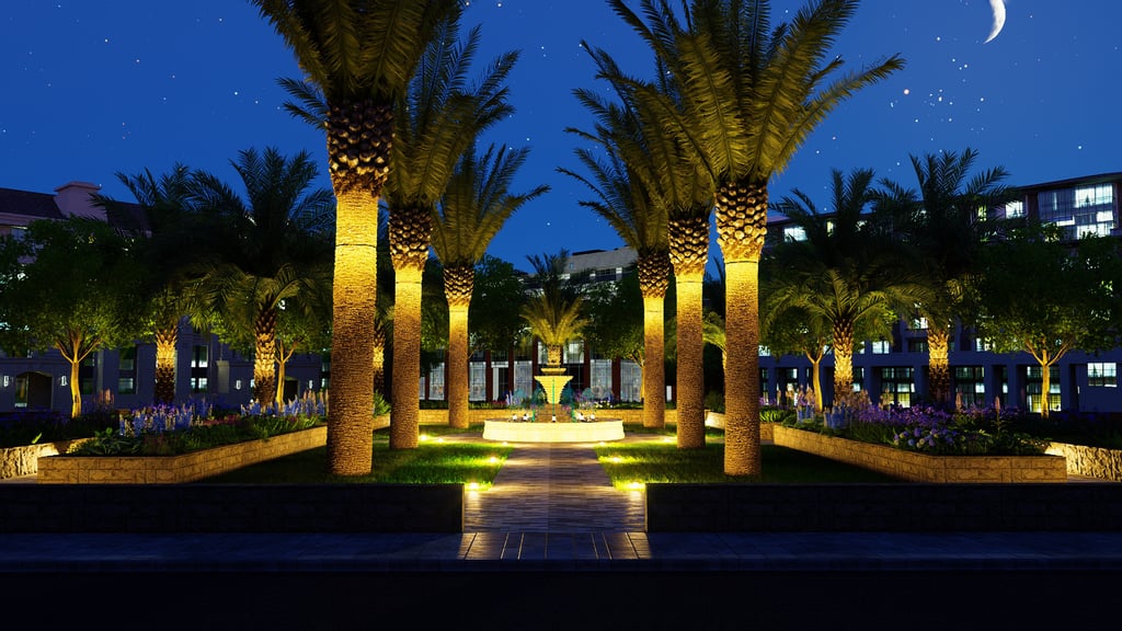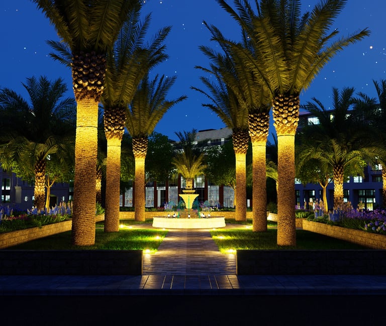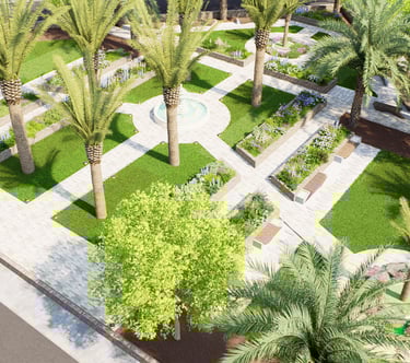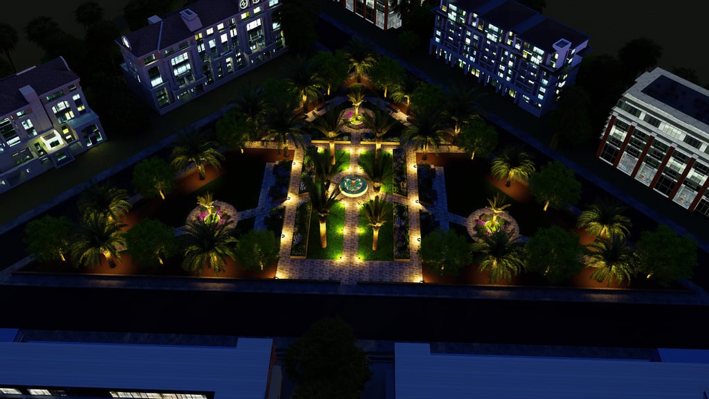 يشمل المشروع التصميم الهندسي الكامل والتنفيذ المستمر للأعمال الخارجية عبر عدة مناطق، مطورة على مراحل متتابعة.
